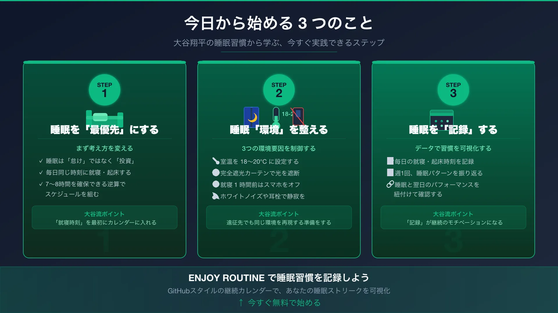 大谷翔平の睡眠習慣から学ぶ、今日から始める3つのこと